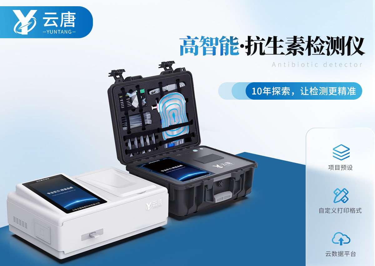 山東云唐智能科技有限公司生產(chǎn)的抗生素殘留檢測儀可現(xiàn)場快速檢測抗生素類殘留、獸藥殘留、激素類殘留、毒素類殘留,化學(xué)類殘留等多種項(xiàng)目,如可快速檢測四環(huán)素類、硝基呋喃類、磺胺類、沙星類、喹諾酮類、氯霉素、慶大霉素、鏈霉素、喹乙醇代謝物、硫酸鏈霉素、羧芐青霉素、噻孢菌素鈉、阿莫西林、氨芐西林、紅霉素、潮霉素B、安普霉紊、桿菌肽等抗生素快速檢測;還可檢測激素類:鹽酸克倫特羅、沙丁胺醇、萊克多巴胺、己烯雌酚等,水產(chǎn)獸藥:呋喃妥因代謝、呋喃西林代謝、呋喃它酮代謝、呋喃唑酮代謝、孔雀石綠等,毒素類:黃曲酶毒素B1、嘔吐毒素、玉米赤霉烯酮、赭曲霉毒素A等,化學(xué)類藥物:氨丙琳、甲基吡啶磷、阿滅丁、雙甲脒、阿散酸、阿維菌素、氮哌酮、芐青霉家、頭孢噻呋、克拉維酸、氯羥吡啶等項(xiàng)目