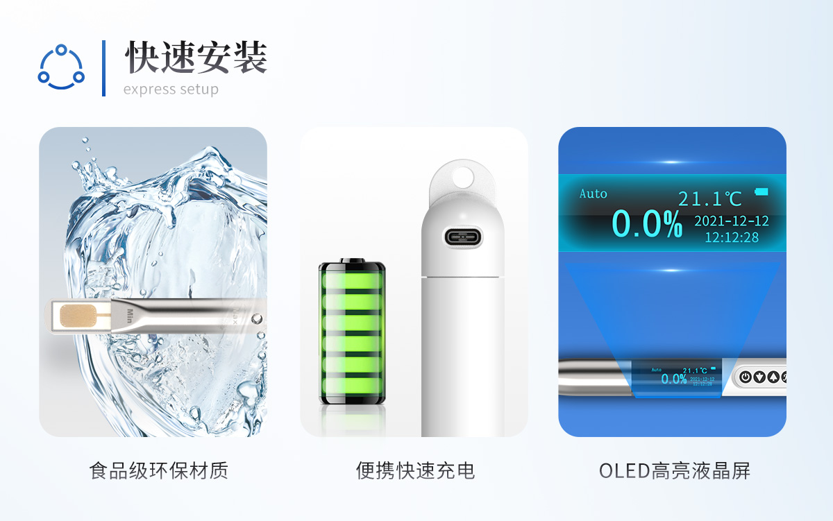 ■沒(méi)有二次污染 探頭所選材質(zhì)均為食品級(jí)環(huán)保材質(zhì),不會(huì)產(chǎn)生二次污染。